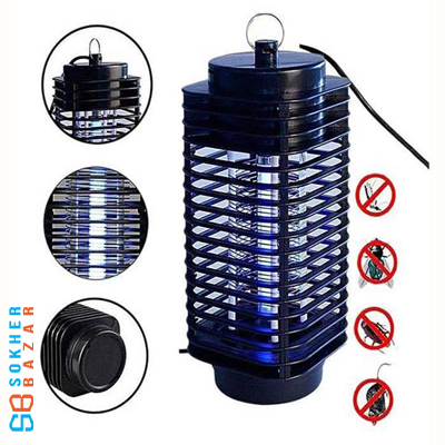 Using the blue light of a special light tube to attract insects such as mosquitoes, flies, etc. and then high voltage kills these insects.